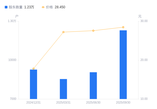 近一年(2024年9月30日至2025年9月30日),灿勤科技A股股东户数从1.12万户,增加至1.23万户,增幅9.66%,区间股价上涨121.31%。