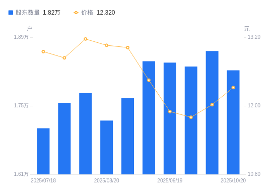 近一年(2024年10月31日至2025年10月20日),中原传媒A股股东户数从2.86万户,减低至1.82万户,降幅36.25%,区间股价上涨19.73%。