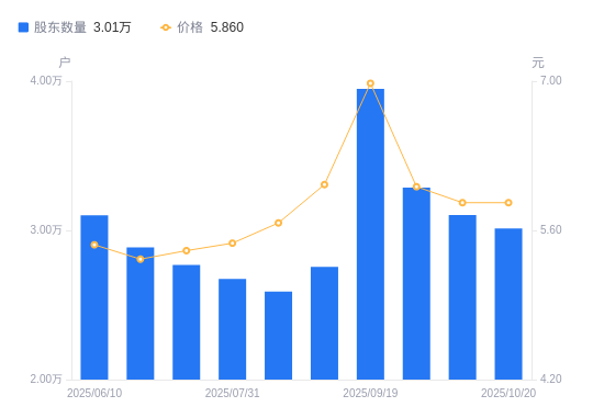 近一年(2024年12月31日至2025年10月20日),三峡旅游A股股东户数从1.98万户,增加至3.01万户,增幅52.01%,区间股价上涨17.32%。