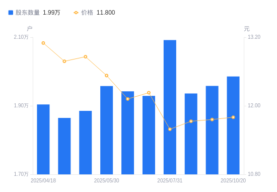 近一年(2024年10月31日至2025年10月20日),富森美A股股东户数从1.88万户,增加至1.99万户,增幅5.40%,区间股价下跌3.99%。