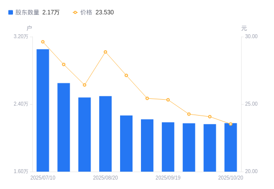近一年(2024年10月31日至2025年10月20日),创识科技A股股东户数从2.17万户,增加至2.17万户,增幅0.01%,区间股价上涨4.05%。