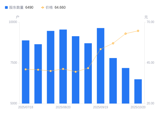 近一年(2024年10月31日至2025年10月20日),安联锐视A股股东户数从1.03万户,减低至6490户,降幅36.99%,区间股价上涨82.81%。