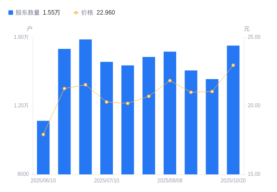 近一年(2024年10月31日至2025年10月20日),东方环宇A股股东户数从1.25万户,增加至1.55万户,增幅23.81%,区间股价上涨48.70%。