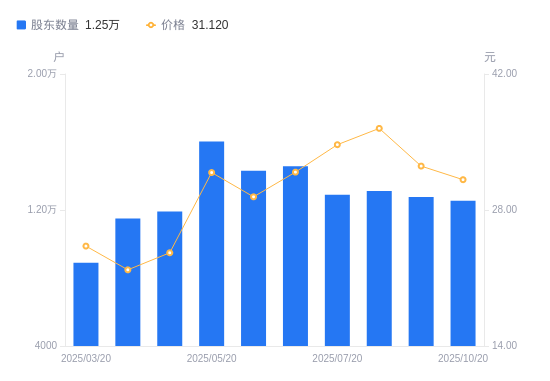 近一年(2024年10月20日至2025年10月20日),润贝航科A股股东户数从1.05万户,增加至1.25万户,增幅18.96%,区间股价上涨50.61%。