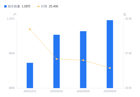 近一年(2024年9月30日至2025年9月30日),龙高股份A股股东户数从9572户,增加至1.09万户,增幅13.92%,区间股价上涨28.10%。