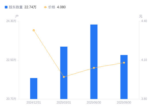 近一年(2024年9月30日至2025年9月30日),大北农A股股东户数从22.07万户,增加至22.74万户,增幅3.01%,区间股价下跌5.38%。