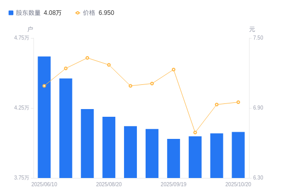 近一年(2024年12月31日至2025年10月20日),新农开发A股股东户数从4.47万户,减低至4.08万户,降幅8.83%,区间股价上涨6.76%。