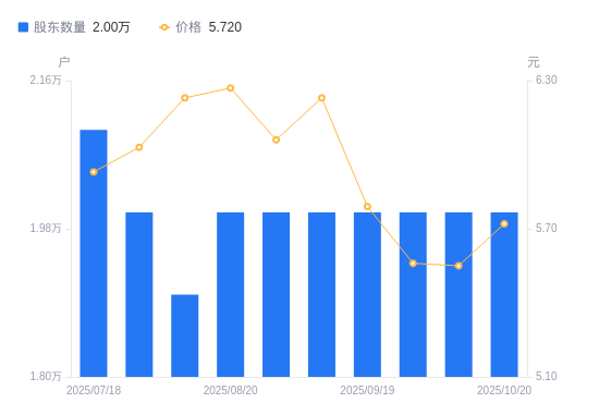 近一年(2024年10月31日至2025年10月20日),中兴商业A股股东户数从2.6万户,减低至2万户,降幅23.08%,区间股价上涨8.70%。