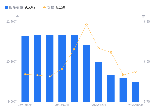 近一年(2024年10月23日至2025年10月20日),黑芝麻A股股东户数从8.6万户,增加至9.6万户,增幅11.63%,区间股价上涨47.13%。