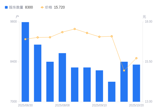 近一年(2024年10月31日至2025年10月20日),中胤时尚A股股东户数从1.28万户,减低至8300户,降幅35.16%,区间股价上涨66.35%。