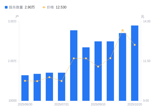 近一年(2024年11月8日至2025年10月20日),佛燃能源A股股东户数从1.81万户,增加至2.9万户,增幅60.22%,区间股价上涨13.70%。