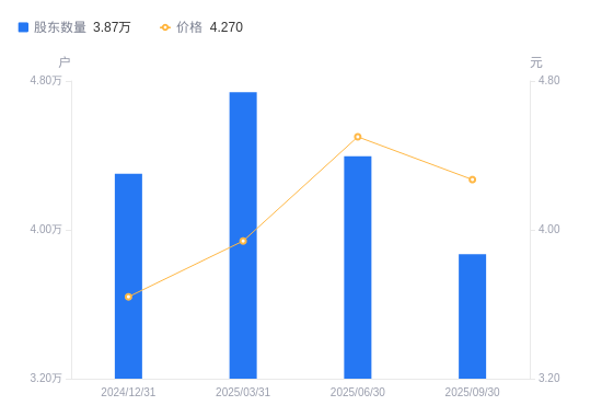 近一年(2024年9月30日至2025年9月30日),光正眼科A股股东户数从4.31万户,减低至3.87万户,降幅10.27%,区间股价上涨11.49%。