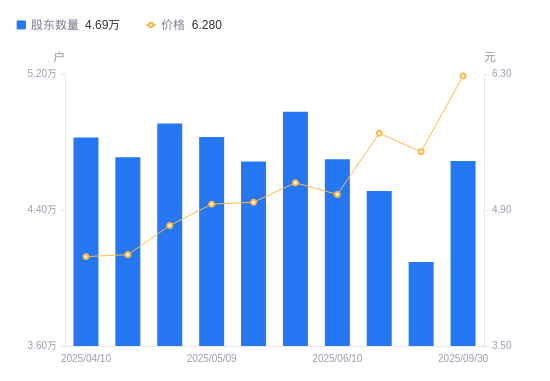 近一年(2024年9月30日至2025年9月30日),天能重工A股股东户数从4.16万户,增加至4.69万户,增幅12.65%,区间股价上涨35.93%。