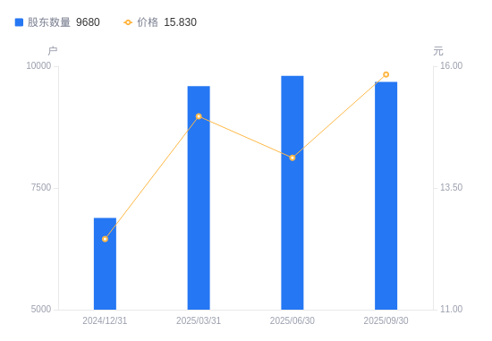 近一年(2024年9月30日至2025年9月30日),诺禾致源A股股东户数从6499户,增加至9680户,增幅48.95%,区间股价上涨39.58%。