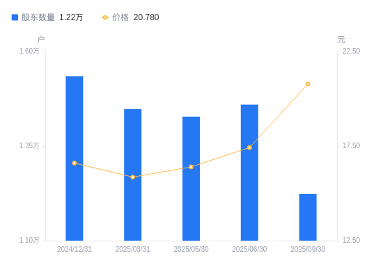 10月23日消息,数据显示,截至2025年9月30日,风光股份A股股东总户数为1.22万户,较上期(2025年6月30日)减少2363户,降幅16.19%。公司最新A股总股本为2亿股,其中流通A股8750万股,户均持有流通A股数量为7154.54股,较上期增加3728.24股,增幅108.81%;户均持流通A股市值14.87万元,较上期增加8.9万元,增幅149.09%。