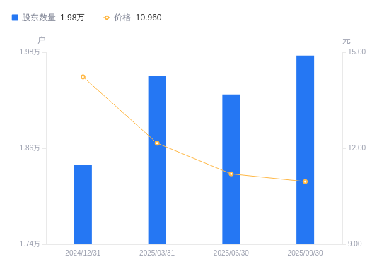 10月23日消息,数据显示,截至2025年9月30日,华凯易佰A股股东总户数为1.98万户,较上期(2025年6月30日)增加485户,增幅2.52%。公司最新A股总股本为4.04亿股,其中流通A股3.51亿股,户均持有流通A股数量为1.78万股,较上期减少447.13股,降幅2.45%;户均持流通A股市值19.47万元,较上期减少9272.08元,降幅4.55%。
