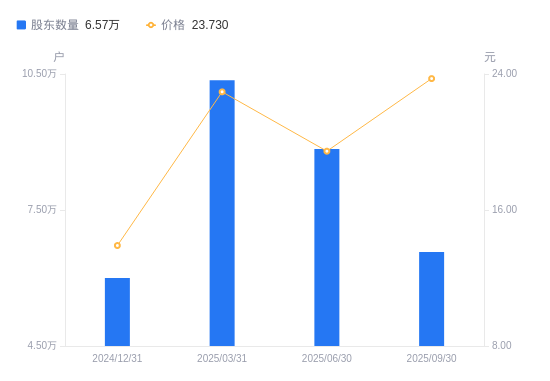 10月23日消息,数据显示,截至2025年9月30日,首都在线A股股东总户数为6.57万户,较上期(2025年6月30日)减少2.27万户,降幅25.68%。公司最新A股总股本为5.02亿股,其中流通A股3.92亿股,户均持有流通A股数量为5962.45股,较上期增加1538.87股,增幅34.79%;户均持流通A股市值14.15万元,较上期增加5.54万元,增幅64.36%。