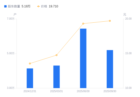 近一年(2024年9月30日至2025年9月30日),大为股份A股股东户数从2.09万户,增加至5.19万户,增幅148.85%,区间股价上涨88.63%。