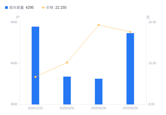 近一年(2024年9月30日至2025年9月30日),皖仪科技A股股东户数从3228户,增加至4295户,增幅33.05%,区间股价上涨53.43%。