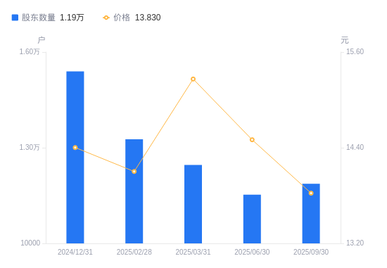 近一年(2024年9月30日至2025年9月30日),太平鸟A股股东户数从1.37万户,减低至1.19万户,降幅13.33%,区间股价上涨8.62%。