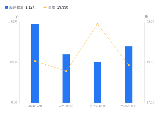近一年(2024年9月30日至2025年9月30日),紫燕食品A股股东户数从9955户,增加至1.12万户,增幅12.19%,区间股价上涨13.97%。