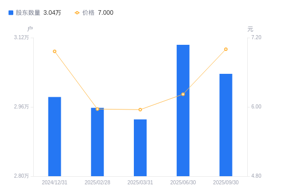 近一年(2024年9月30日至2025年9月30日),宝地矿业A股股东户数从3.4万户,减低至3.04万户,降幅10.68%,区间股价上涨18.58%。