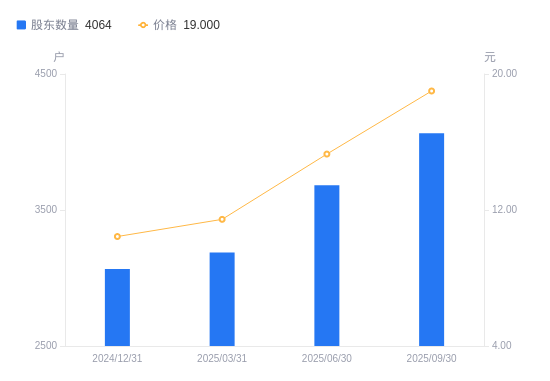 近一年(2024年9月30日至2025年9月30日),奥福科技A股股东户数从3321户,增加至4064户,增幅22.37%,区间股价上涨112.77%。