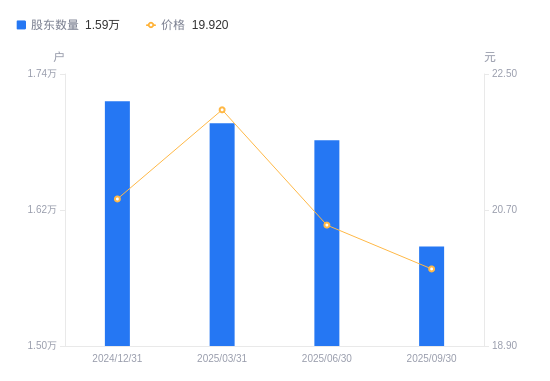 10月24日消息,数据显示,截至2025年9月30日,正海生物A股股东总户数为1.59万户,较上期(2025年6月30日)减少937户,降幅5.57%。公司最新A股总股本为1.8亿股,其中流通A股1.8亿股,户均持有流通A股数量为1.13万股,较上期增加631.71股,增幅5.90%;户均持流通A股市值22.58万元,较上期增加6374.97元,增幅2.91%。
