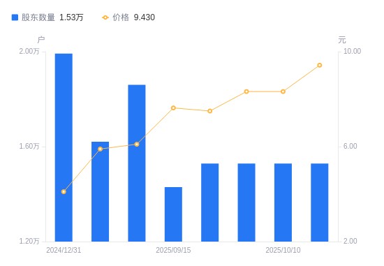 近一年(2024年9月30日至2025年9月30日),德力股份A股股东户数从2.04万户,减低至1.53万户,降幅24.95%,区间股价上涨88.24%。