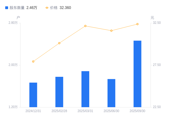 近一年(2024年9月30日至2025年9月30日),安宁股份A股股东户数从1.73万户,增加至2.46万户,增幅42.02%,区间股价上涨19.05%。
