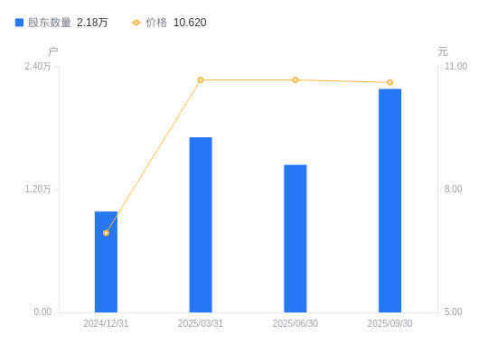 10月24日消息,数据显示,截至2025年9月30日,狮头股份A股股东总户数为2.18万户,较上期(2025年6月30日)增加7413户,增幅51.40%。公司最新A股总股本为2.3亿股,其中流通A股2.3亿股,户均持有流通A股数量为1.05万股,较上期减少5414.93股,降幅33.95%;户均持流通A股市值11.19万元,较上期减少5.85万元,降幅34.32%。