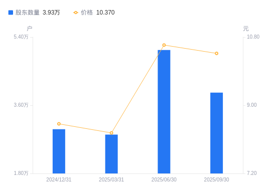 近一年(2024年9月30日至2025年9月30日),贝肯能源A股股东户数从3.31万户,增加至3.93万户,增幅18.99%,区间股价上涨28.98%。