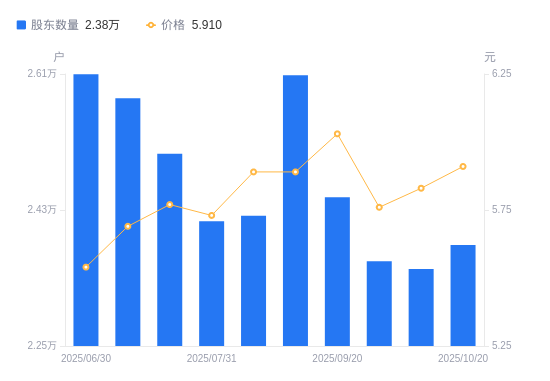 近一年(2024年10月10日至2025年10月10日),通程控股A股股东户数从2.61万户,减低至2.35万户,降幅9.97%,区间股价上涨21.97%。