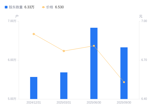近一年(2024年9月30日至2025年9月30日),三峡水利A股股东户数从5.56万户,增加至6.33万户,增幅13.85%,区间股价下跌6.86%。