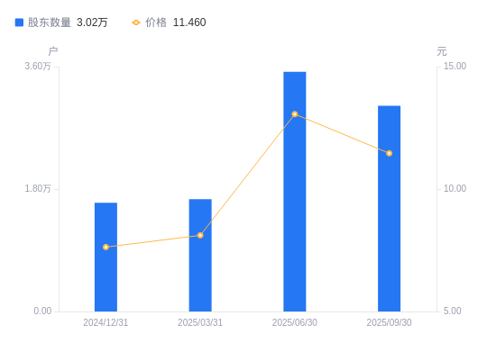 近一年(2024年9月30日至2025年9月30日),红墙股份A股股东户数从1.52万户,增加至3.02万户,增幅99.10%,区间股价上涨62.78%。