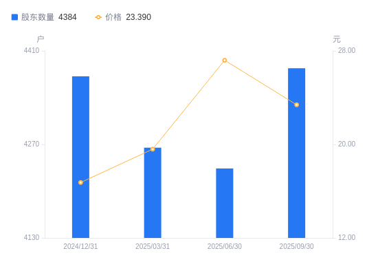 近一年(2024年9月30日至2025年9月30日),东来技术A股股东户数从4629户,减低至4384户,降幅5.29%,区间股价上涨88.14%。