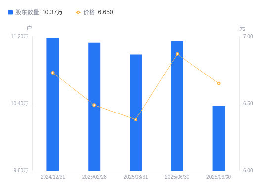 10月27日消息,数据显示,截至2025年9月30日,金健米业A股股东总户数为10.37万户,较上期(2025年6月30日)减少7698户,降幅6.91%。公司最新A股总股本为6.42亿股,其中流通A股6.42亿股,户均持有流通A股数量为6188.25股,较上期增加427.59股,增幅7.42%;户均持流通A股市值4.12万元,较上期增加1576.14元,增幅3.98%。