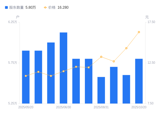 近一年(2024年9月30日至2025年9月30日),晋控煤业A股股东户数从4.06万户,增加至5.54万户,增幅36.49%,区间股价下跌10.33%。