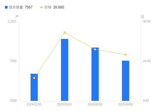 近一年(2024年9月30日至2025年9月30日),安必平A股股东户数从6014户,增加至7567户,增幅25.82%,区间股价上涨65.41%。