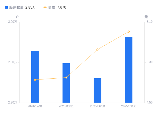 10月27日消息,数据显示,截至2025年9月30日,阳普医疗A股股东总户数为2.85万户,较上期(2025年6月30日)增加4087户,增幅16.74%。公司最新A股总股本为3.09亿股,其中流通A股2.72亿股,户均持有流通A股数量为9550.45股,较上期减少1598.59股,降幅14.34%;户均持流通A股市值7.33万元,较上期减少3341.93元,降幅4.36%。