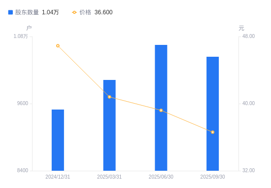 近一年(2024年9月30日至2025年9月30日),普瑞眼科A股股东户数从1.14万户,减低至1.04万户,降幅8.54%,区间股价下跌6.06%。