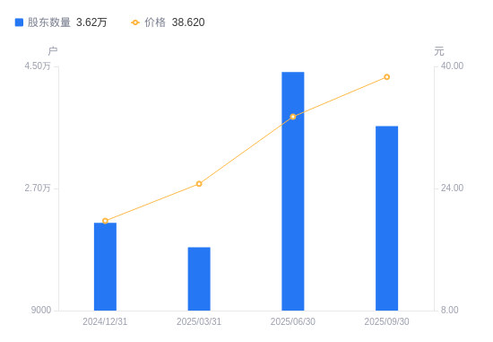 近一年(2024年9月30日至2025年9月30日),冰川网络A股股东户数从2.92万户,增加至3.62万户,增幅23.90%,区间股价上涨145.36%。