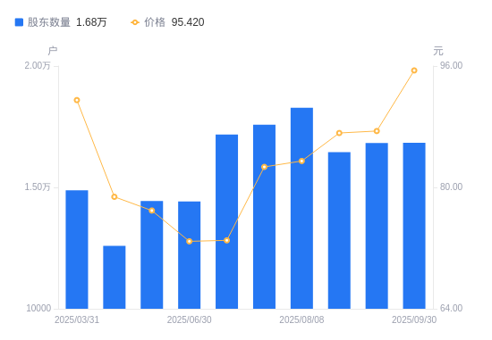 近一年(2024年9月30日至2025年9月30日),恒工精密A股股东户数从8495户,增加至1.68万户,增幅98.22%,区间股价上涨170.08%。