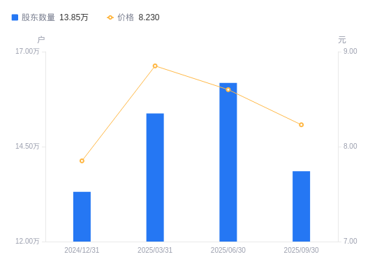 近一年(2024年9月30日至2025年9月30日),保变电气A股股东户数从18.09万户,减低至13.85万户,降幅23.41%,区间股价下跌9.66%。