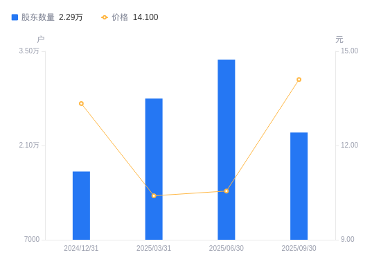 近一年(2024年9月30日至2025年9月30日),嘉友国际A股股东户数从1.24万户,增加至2.29万户,增幅84.69%,区间股价上涨0.46%。