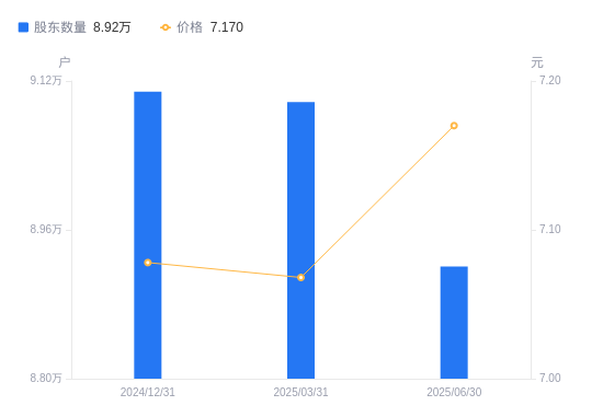 近一年(2024年9月30日至2025年9月30日),天通股份A股股东户数从9.7万户,增加至12.81万户,增幅32.11%,区间股价上涨60.46%。