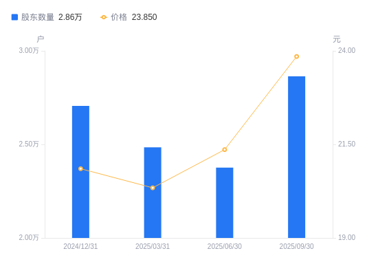 近一年(2024年9月30日至2025年9月30日),凤凰光学A股股东户数从2.38万户,增加至2.86万户,增幅20.53%,区间股价上涨22.31%。