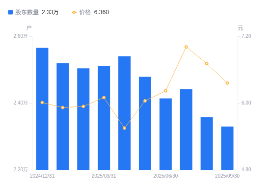 10月27日消息,数据显示,截至2025年9月30日,汉森制药A股股东总户数为2.33万户,较上期(2025年8月29日)减少282户,降幅1.20%。公司最新A股总股本为5.03亿股,其中流通A股4.98亿股,户均持有流通A股数量为2.14万股,较上期增加255.55股,增幅1.21%;户均持流通A股市值13.59万元,较上期减少5764.24元,降幅4.07%。