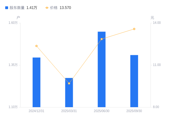 近一年(2024年9月30日至2025年9月30日),新迅达A股股东户数从1.64万户,减低至1.41万户,降幅13.97%,区间股价上涨37.49%。