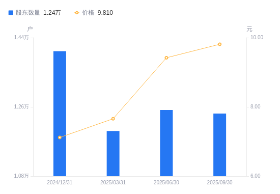 近一年(2024年9月30日至2025年9月30日),新宏泽A股股东户数从1.11万户,增加至1.24万户,增幅11.65%,区间股价上涨52.14%。